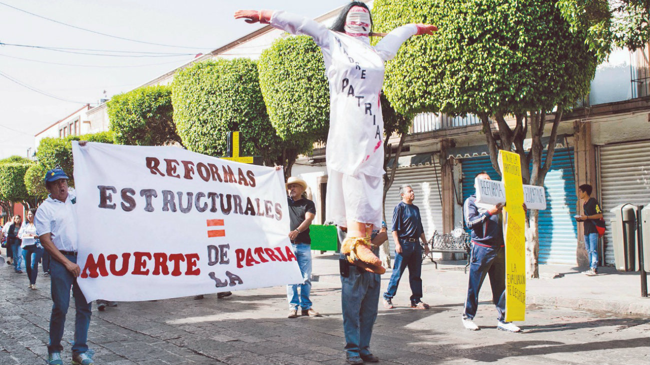 Por Víctor PolencianoEn el Día del Trabajo, más de 800 personas de 11 organizaciones marcharon por las calles del Centro Histórico para reclamar derechos y mejoras laborales. Antes de que los trabajadores iniciaran su marcha, integrantes de la Unidad Cívica Felipe Carrillo Puerto, que encabeza Pablo González Loyola, caminaron sobre Corregidora para lanzar consignas. Los comerciantes que fueron retirados de la Alameda Hidalgo en junio de 2016, cantaban a su paso que ese lugar eran suyo y que lo iban a recuperar.Detrás de este contingente, arrancó un grupo del magisterio, quienes con una banda de guerra, mantas, un carro alegórico y cruces de acrílico, rechazaban la implementación de la Reforma Educativa.Utilizaron un carro alegórico donde viajaban unos niños vestidos de obreros en representación de la explotación que sufren los trabajadores en el país.Posteriormente, taxistas acusaron la proliferación de unidades pirata, así como la entrega desmedida de más permisos, por lo que exigieron una verdadera regulación.Detrás marcharon los demás contingentes integrados por trabajadores y militantes de Morena, quienes exigieron mejores condiciones laborales. Al final del recorrido, los manifestantes se congregaron en el kiosko del Jardín Zenea. leer más