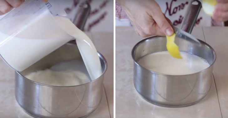 1. Entonces, primero debemos preparar la crema en una olla. Pon la leche y la cáscara de limón