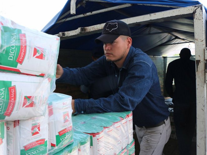 Asimismo transportan dos mil 200 bolsas de café, tres mil paquetes de galletas, dos mil 900 latas de atún, mil 488 latas de sardinas y dos mil 640 botellas de agua de 1.5 litros, para abastecer a la población damnificada hasta por diez días.
