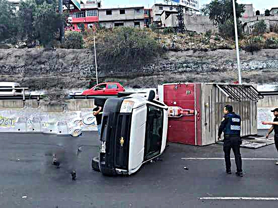 La volcadura de una camioneta con remolque afecta la circulación en la carretera federal México-Pachuca, con dirección al municipio mexiquense de Ecatepec.
