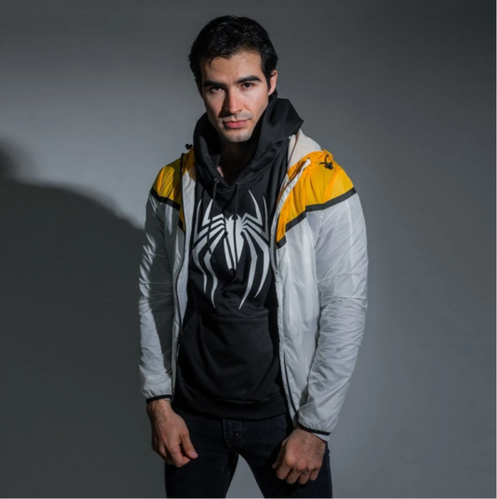 La prenda deportiva es exclusiva de Epicland y posee la esencia de Spiderman al tener plasmada en la zona frontal una araña gigante. Cuenta con capucha y está confeccionada en algodón.